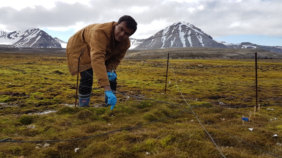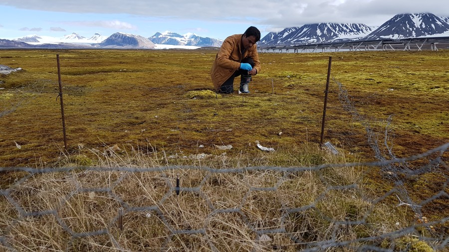 | 0Dr. Prashant Singh is a taxonoom op het gebied van cyanobacteriën. Nadat we elkaar over ons werk hebben verteld, neemt hij monsters bij mijn exclosures om de gemeenschap van cyanobacteriën te vergelijken in begraasde en onbegraasde vegetatie. | |