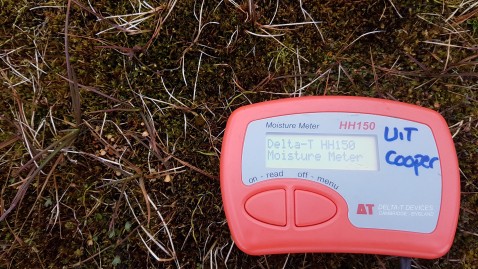 | Santonu Goswani van de ruimtevaartorganisatie in India kwam precies op het goede moment naar Ny-Ă…lesund om tijdens de workshop veel te leren over alle vegetatiestudies die hier plaatsvinden. Hij bestudeert zelf permafrost verschijnselen met een hyperspectrale camera. Ik vraag hem om ook opnames te maken van de fragile exclosures waar we mooi de reflectie van onbegraasd en begraasde plots met elkaar kunnen vergelijken. Hij heeft ook een bodemvochtigheidsmeter bij zich en daarom meten we ook het vochtgehalte in de bodem. | |