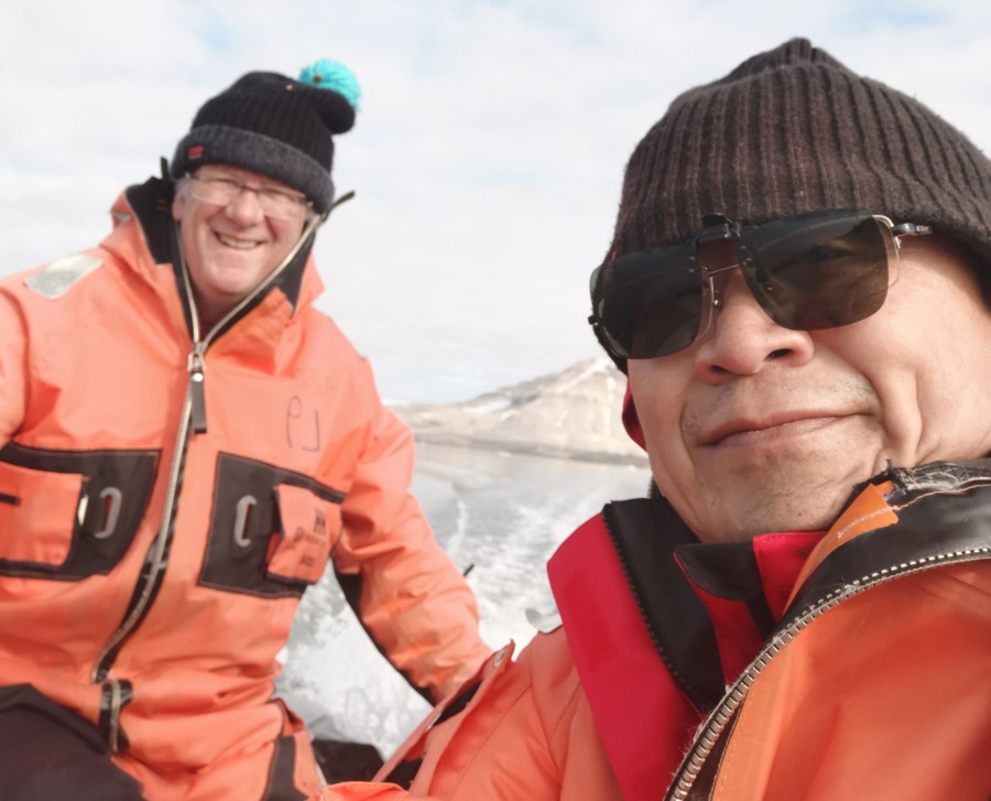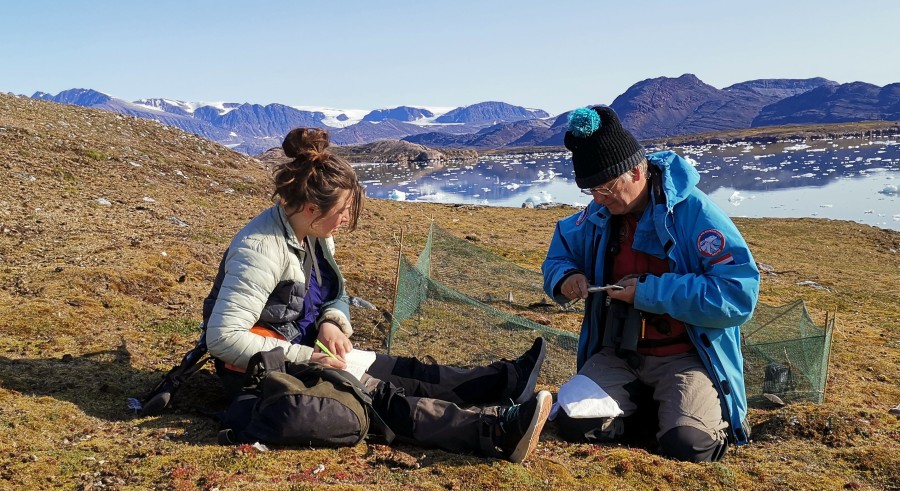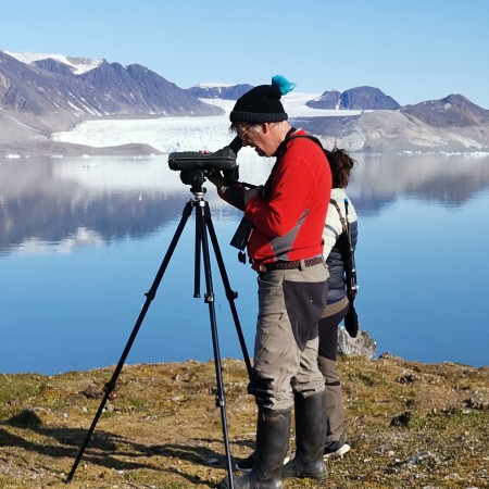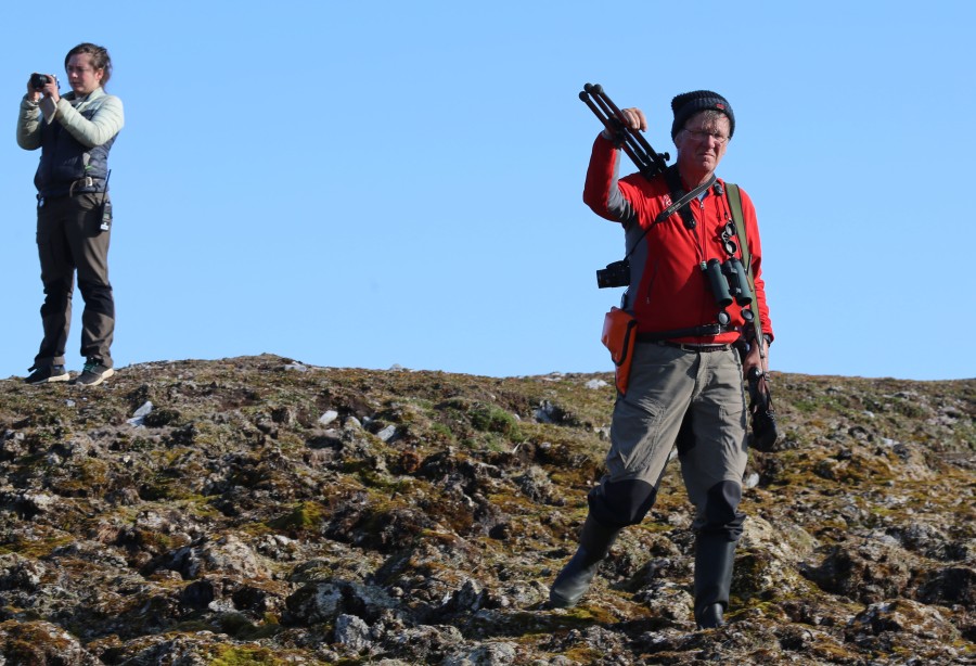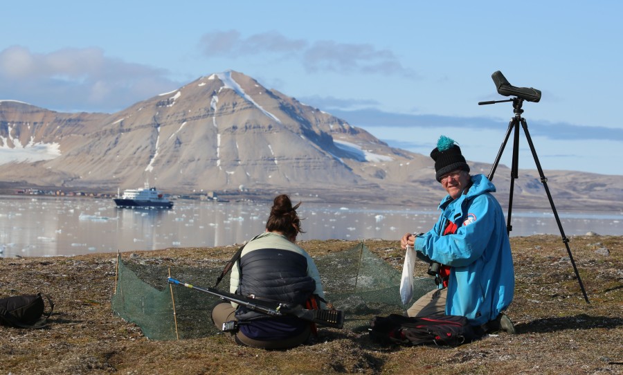 Prof. Zhengwang heeft veel vogels gefotografeerd, maar hij heeft ook een aantal leuke opnames gemaakt van Kristle en mij aan het werk. We hebben vogels geteld en zijn bezig groeicurves te maken van jongen van de noordse stern. Eerder was de eilandtelling erg chaotisch verlopen doordat we vier ijsberen tegenkwamen. |