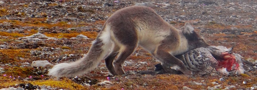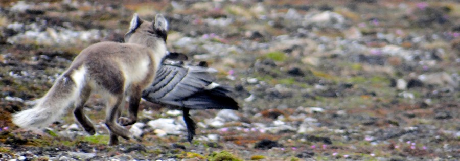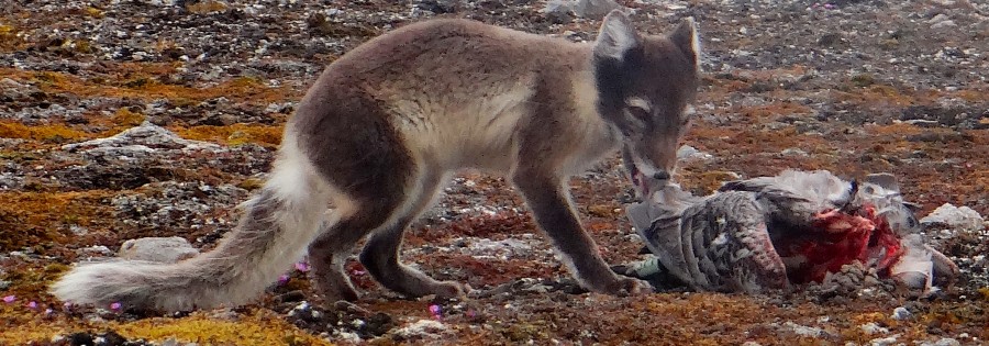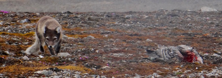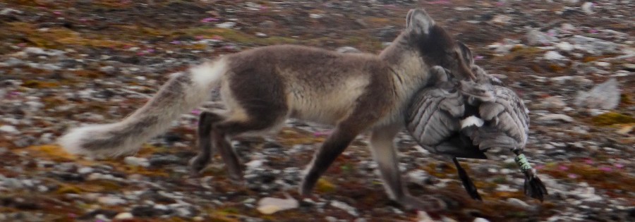 While counting birds, we meet an arctic fox which has just killed an adult goose.