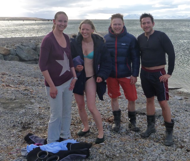 | In the previous video about Martine, you can see it happen in the bottom left corner. The weekly swim on Sunday evening. Ingri has gathered a few brave people to dip into the fjord together with her. | ||