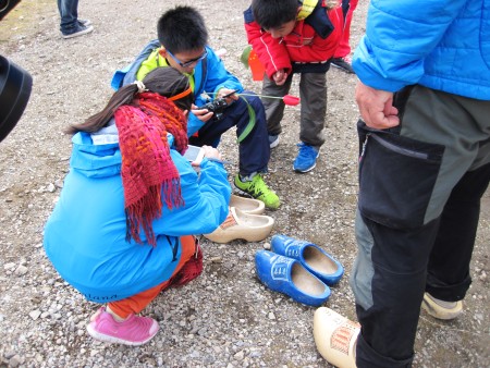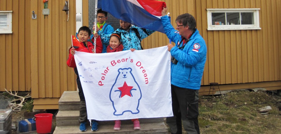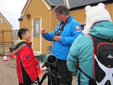 | A group of Chinese children is traveling in the Arctic and has asked to meet me. We make a lot of pictures. They give us special pins and we give them plastic tulips. | |