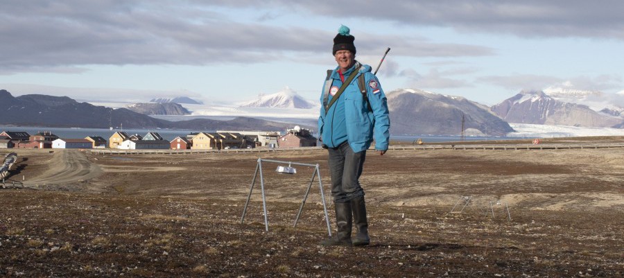 We hebben het experiment van Toke Thomas Høye van de universiteit van Århus weer opgepakt en de camara's geïnstalleerd, die insecten op de bloemen van Dryas moeten fotograferen. Het experiment was vorig jaar opgezet (zie ook in de weblog) en ik heb de gegevens verzameld en opgestuurd. Het leek me goed om het nog een jaar te doen. Margje maakte de foto terwijl we bezig waren de toestellen aan de frames te bevestigen.