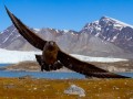 | Deze vogel heet Grote Jager. Het is de top predator onder de vogels hier en doodt volwassen eidereenden en brandganzen. Christophe will sieralgen bemonsteren maar komt te dicht bij een nest of jong van deze soort. Wie durft. | |