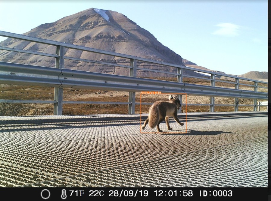 And on this picture an arctic fox (with a GPS collar) is identified passing the bridge.
