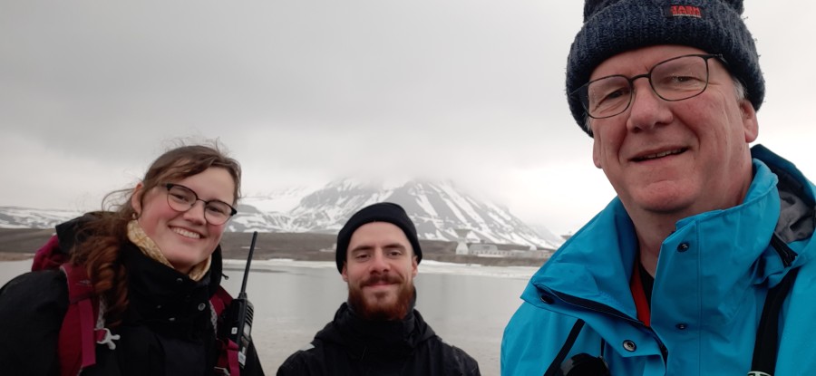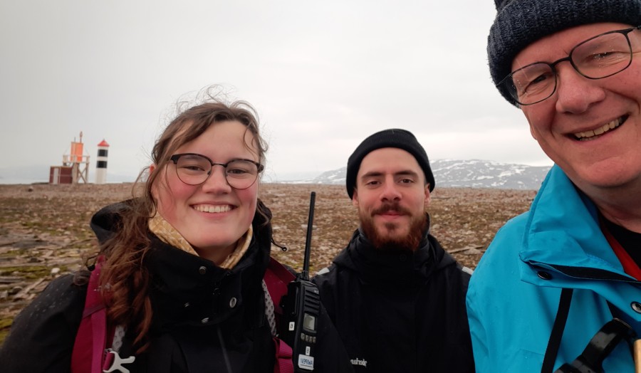 Een groepselfie op Brandalpynkten vlakbij de vuurtoirens. Van links nbaar rechts Anne Vorenkamp, Pyter Bootsma en Maarten Loonen. | |