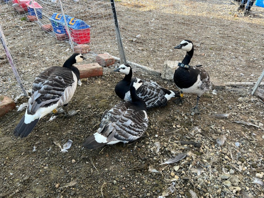 Yellow BA is a female with a GPS neck collar. It stores the position and behaviour of the goose every 15 minutes. When the goose arrives in Scotland, the information will be downloaded via a telephone network.