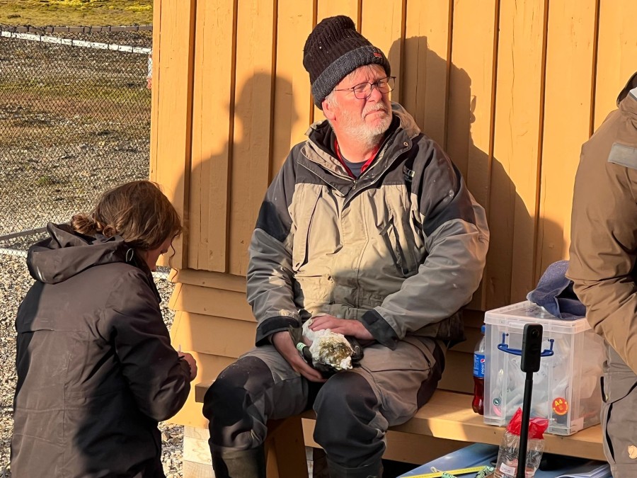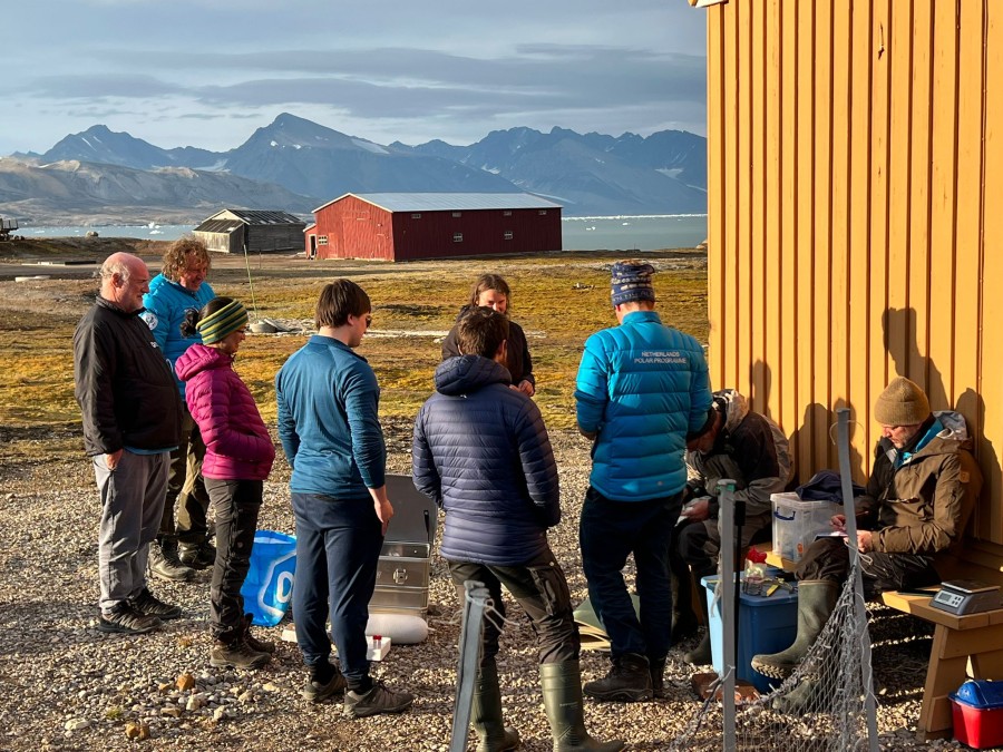 There are only 10 families in town and earlier we ringed 8 of them. Tonight we have caught the last two in a group effort with people coming from a polar bear lecture in Kongshallen. It went smoothly. During ringing and blood sampling, we had a lot of attention.
