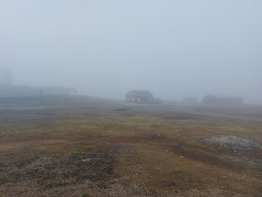 Het is maandag 5 augustus en er hangt dichte mist rond Ny-Alesund. De ochtendvlucht vertrekt niet, maar we hebben nog hoop dat het opklaart. Vandaag vliegt Lore terug naar Longyearbyen met samples die Rúna en Lore hebben genomen voor het INSULATE project. Rúna blijft nog drie dagen voor een ander project van haar (waarover later meer). | |