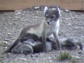 3 juli 2006, 15:00 We hebben al een paar keer gezien dat moedervos met een kuiken aankomt, maar nu heb ik het ook kunnen filmen. De vosjes gaan eerst vechten om het kuiken, maar één rent ermee vandoor en de rest gaat zogen bij moeder.Deze vossen zullen honderden kuikens verdelen onder elkaar deze zomer. |