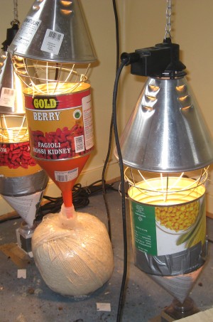 "I am bitten. Our whole hut is mad at you! Tja.... I have build a down athropods extractor. A warm lamp should chase the insects out of the down, via a funnel into a glass of alcohol. But you have to be carefull with escape artists. And Elise will be more careful from now onwards. | ||