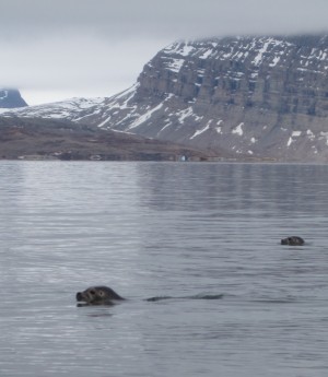 | When we pack to return to the village after eight hours of censussing, we meet some curious seals. And again the cloud cover is spectacular. | |||||||