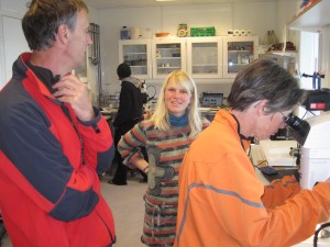 Jaap van der Meer of the Netherlands Institute of Sea Research NIOZ is staying in the Netherlands Arctic Station to develop a new project. We are visiting the scientists in the marine laboratory and they are lindly presenting their research projects. Marion is also joining as she has worked with fytoplankton for many years too at the University of Groningen. | ![]() |
