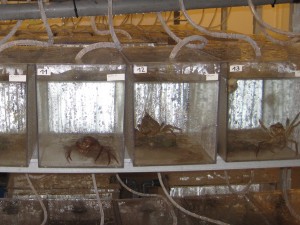 Sina Petrowski and Kathrin Schachtl are testing food web structure in aquaria with crabs and various other sea creatures. |