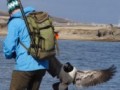 Vanochtend op het eiland Prins Heinrichsøya gaan kijken welke ganzen daar broedden en hoeveel eieren ze hebben. Margje was met mij mee om de ringen te lezen. Ze loopt 10 meter achter mij aan en heeft een telescoop maar ook haar fototoestel. Dit klifje is ieder jaar bezet door hetzelfde paar ganzen en ze hebben geen zin te laten zien hoeveel eieren ze hebben. Van het vrouwtje krijg ik eerst nog een flinke klap van haar vleugelboei tegen mijn pols alvorens ze me haar eieren laat tellen. Vier. Niet slecht voor dit jaar. |